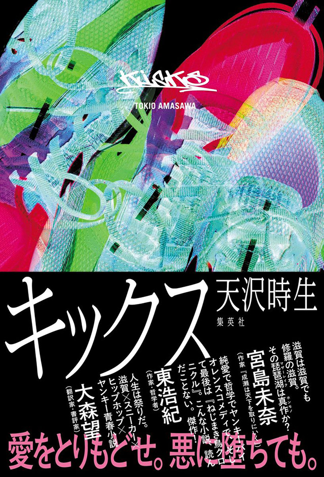 短編集『すべての原付の光』で鮮烈な単行本デビューを飾った新鋭・天沢時生(1985年、滋賀県近江八幡市生まれ)。その第一長編『キックス』は、滋賀から天下を取りにいく話である—とか書くと「成瀬あかりかよ!」とツッコまれそうだが、成瀬が歩くのが陽の当たる大通りなら、本書の目標はダークサイドのてっぺん。『男一匹ガキ大将』的なバンカラからゾクとヤンキーを経てギャングスタ・ラップに至る不良文化に“神のキックス(スニーカー)”を授けて、頂点へと駆け上がる。